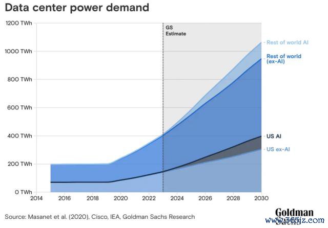 后者看,算力中心是"电老虎",但全球供电能力已经捉襟见肘。彭博社近期报道指出,到 2035 年,美国数据中心的电力需求将翻一番,占总需求的近 9%,这或将是自 20 世纪 60 年代空调普及以来美国能源需求的最大增幅。