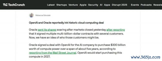9 月,OpenAI 跟甲骨文签订了期限 5 年、价值 3000 亿美元的算力采购合同。